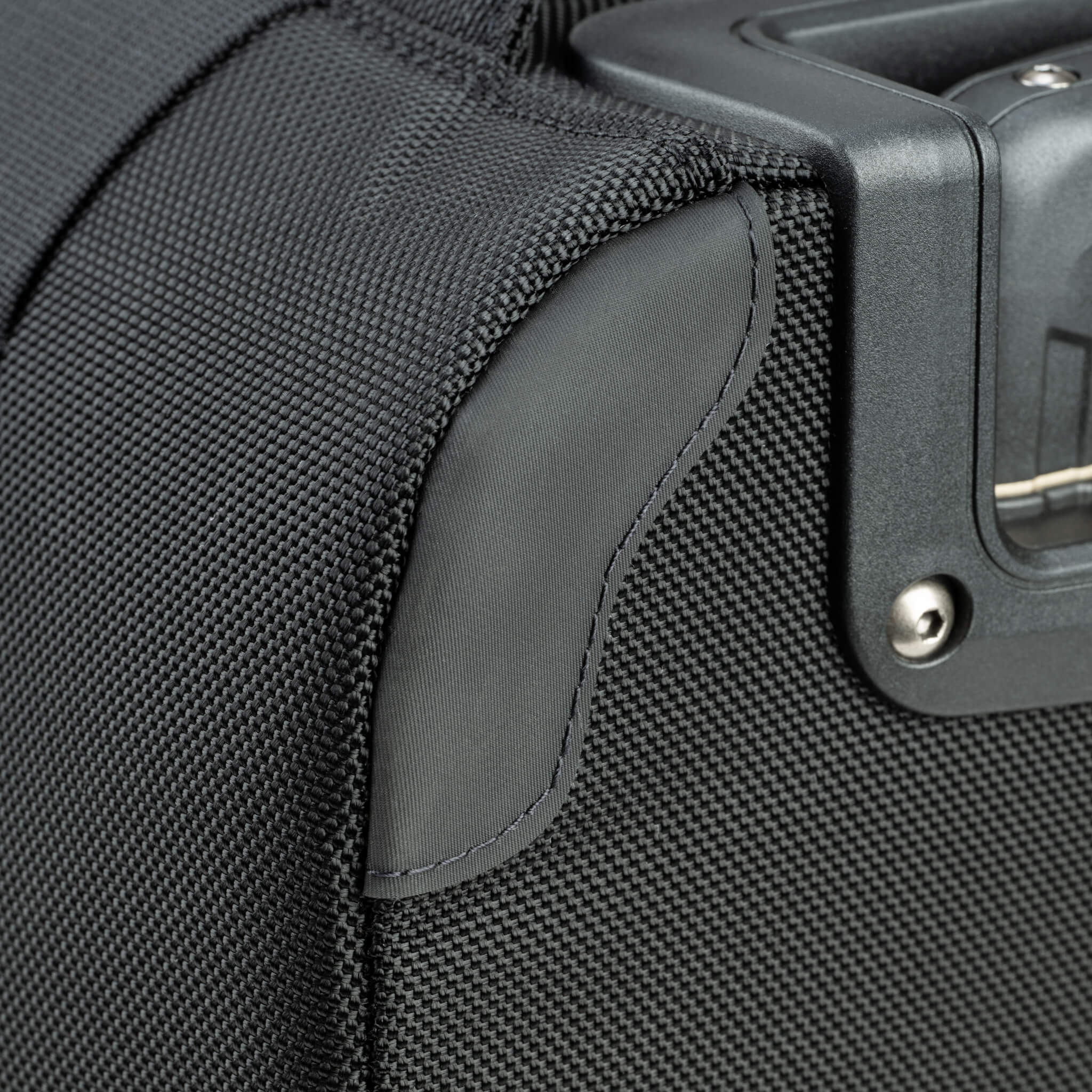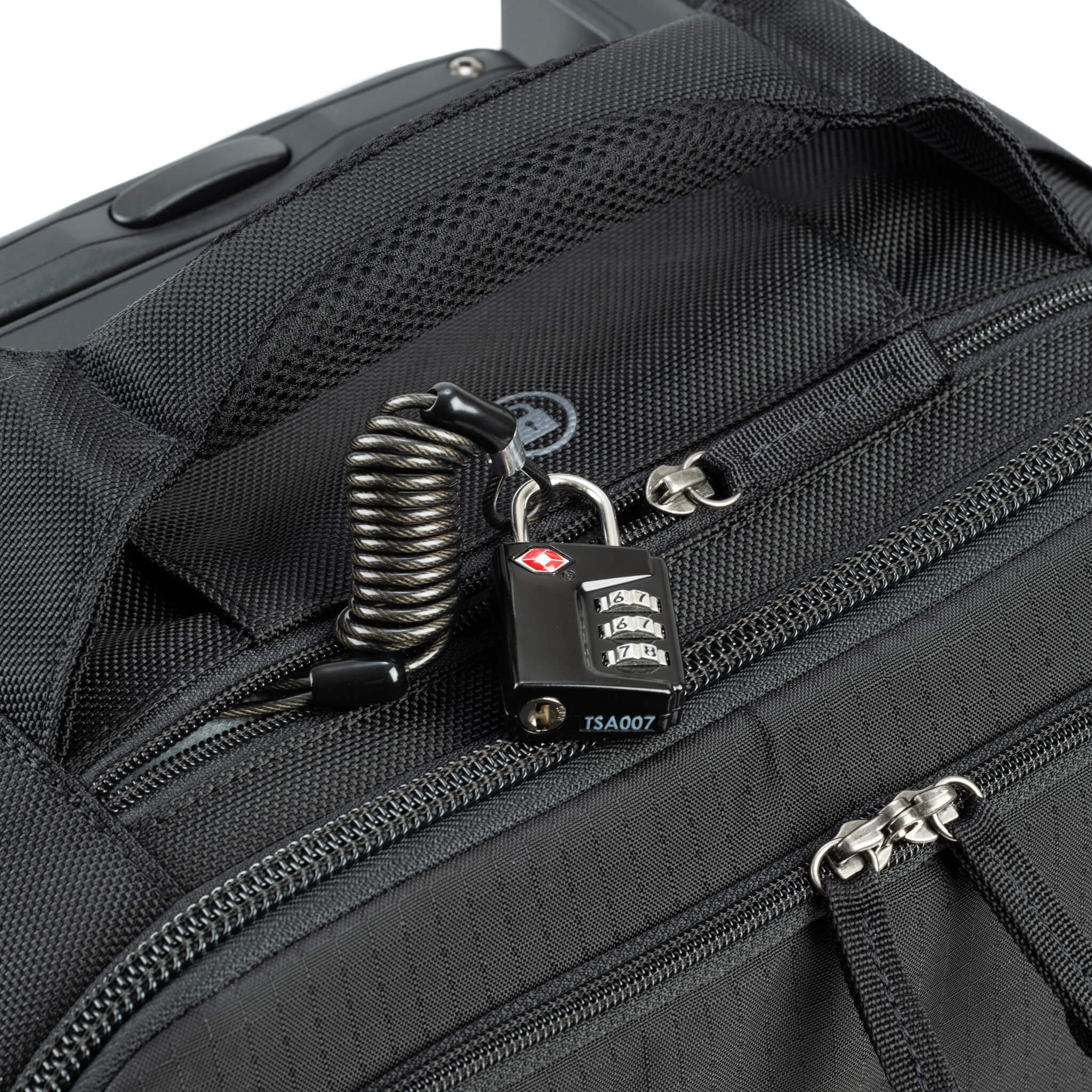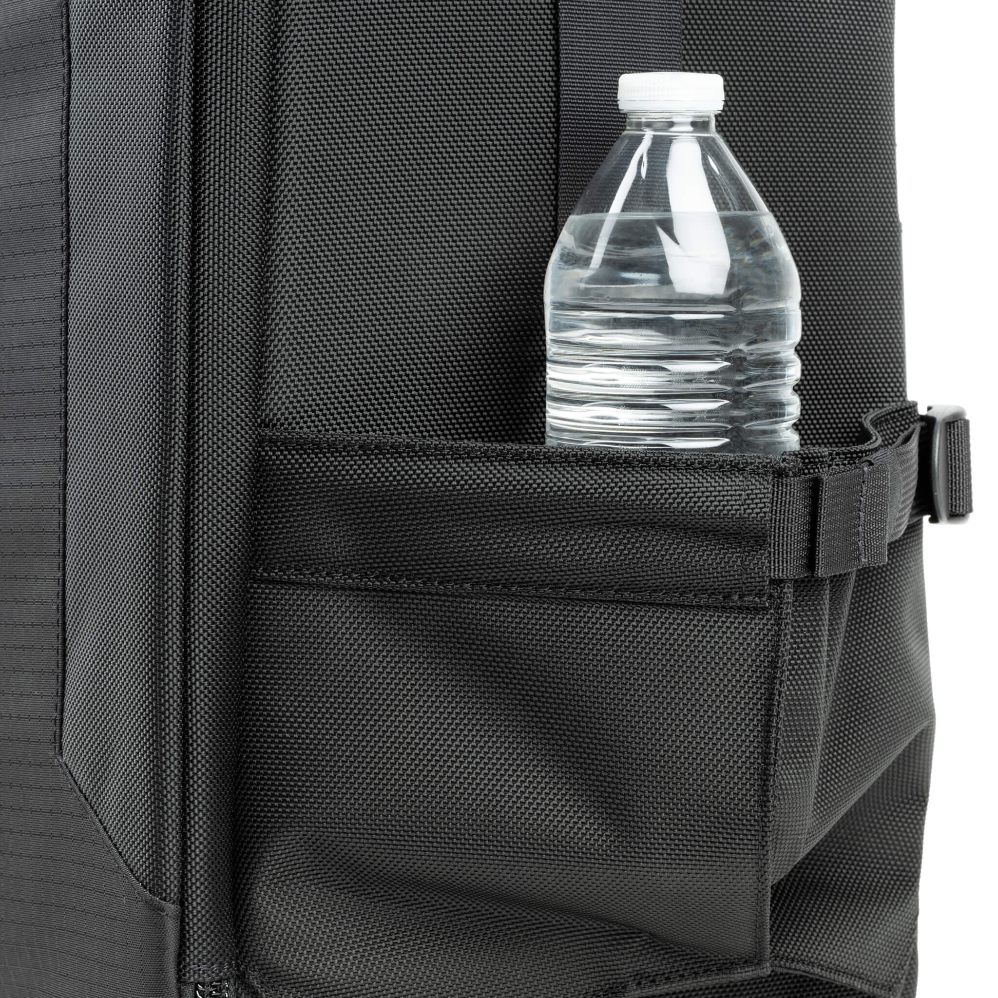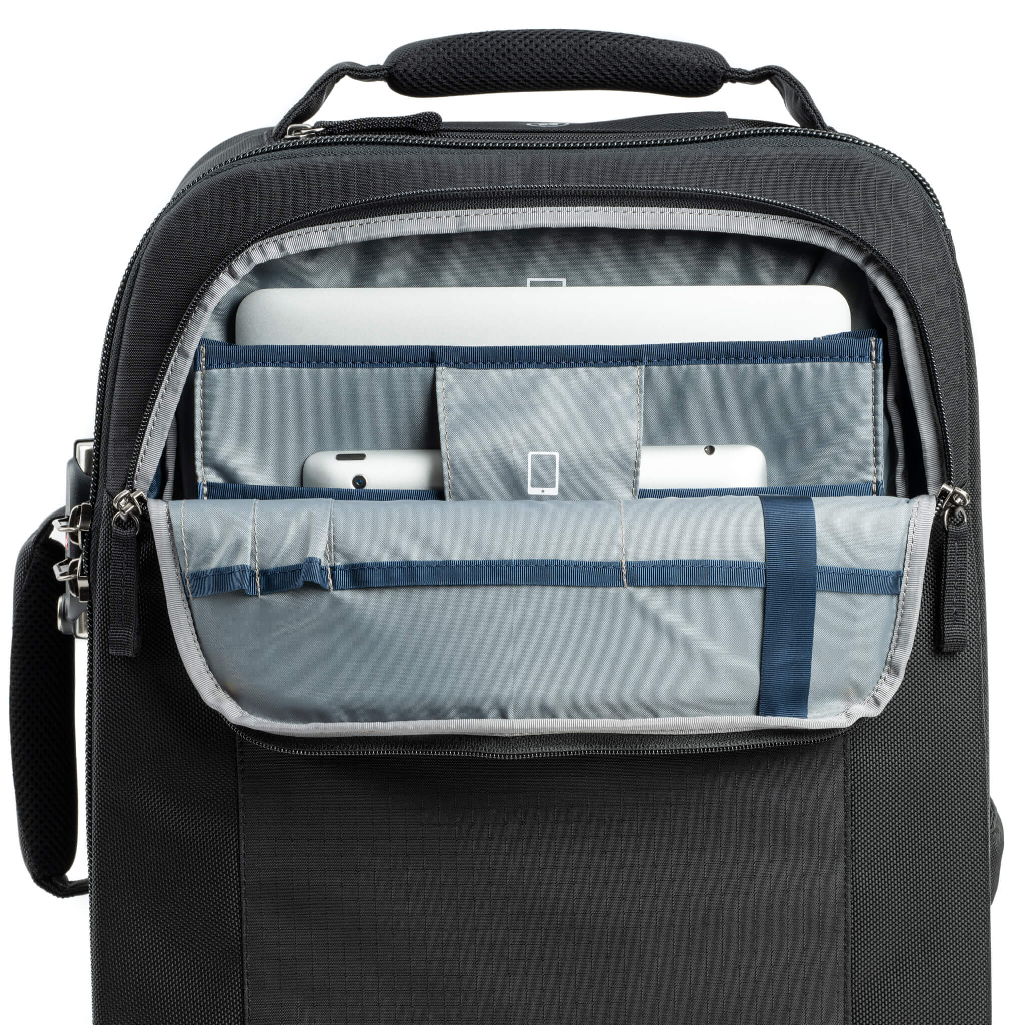 lenses attached Airport Roller Derby V2 Airport Roller Derby V2 Roller Derby V2 (side view) Top zippered pocket stores security cable and lock. Can also be use for flat items 4 dual-wheel sets provide 360 degree maneuverability in tight spaces Deep front pocket with organizer and laptop sleeve Roller Derby V2 (side view) Expandable side pocket for water bottle or tripod (straps included) Included tripod strap with locking SR buckle TSA Zipper Lock for main compartment Reinforced back panel for increased durability Lock and cable to secure and tether the bag. Computer compartment now includes Lockable YKK® RC Fuse Zippers Reinforced corners for increased durability Travel Sentry security ID plate features a unique ID number to assist in retrieving lost bags Key lanyard in front zippered pocket Fits a 16” MacBook Pro and 12.9” iPad Pro in dedicated, padded pockets Roller Derby V2 (side view) Expandable side pocket for water bottle or tripod Rain cover included